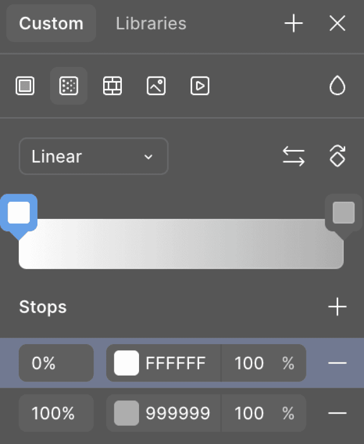 Noise, linear gradients, and background blur keep the UI grounded on dark surfaces. Thin strokes create separation without breaking continuity. Gradients fill space and guide attention — used sparingly so they don't compete with content.